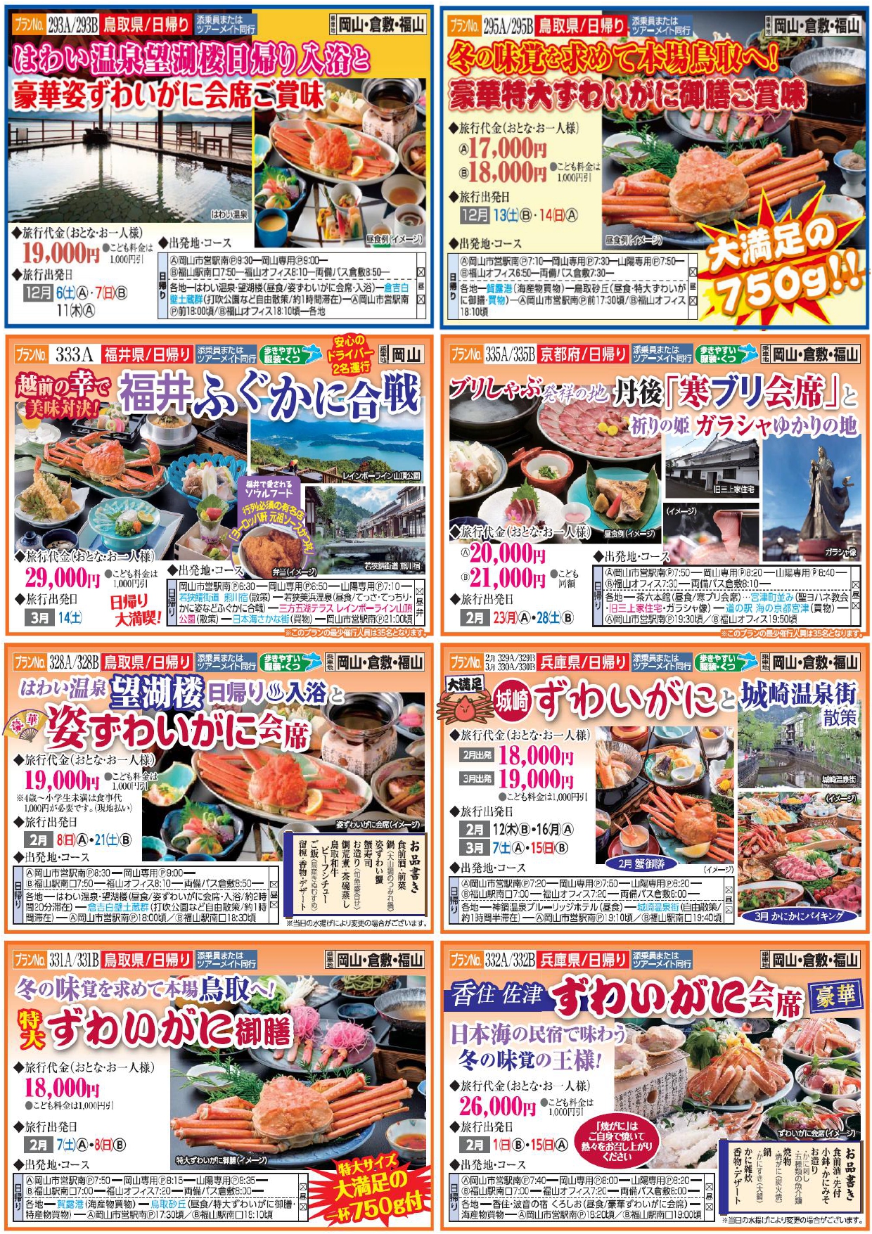 No333 越前の幸で美味対決!福井ふぐかに合戦【岡山発着】3月14日(土)発